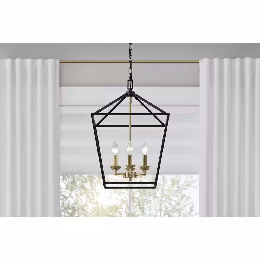Upgrade your home’s lighting with this Home Decorators Collection Weyburn 6-Light Black and Gold Caged Farmhouse Chandelier. This fixture blends rustic and industrial details for a classic farmhouse look that will complement any dining room. The contemporary metal birdcage and two-tone black and gold finish elevate any design. Installation is easy with the included matching round ceiling plate.
